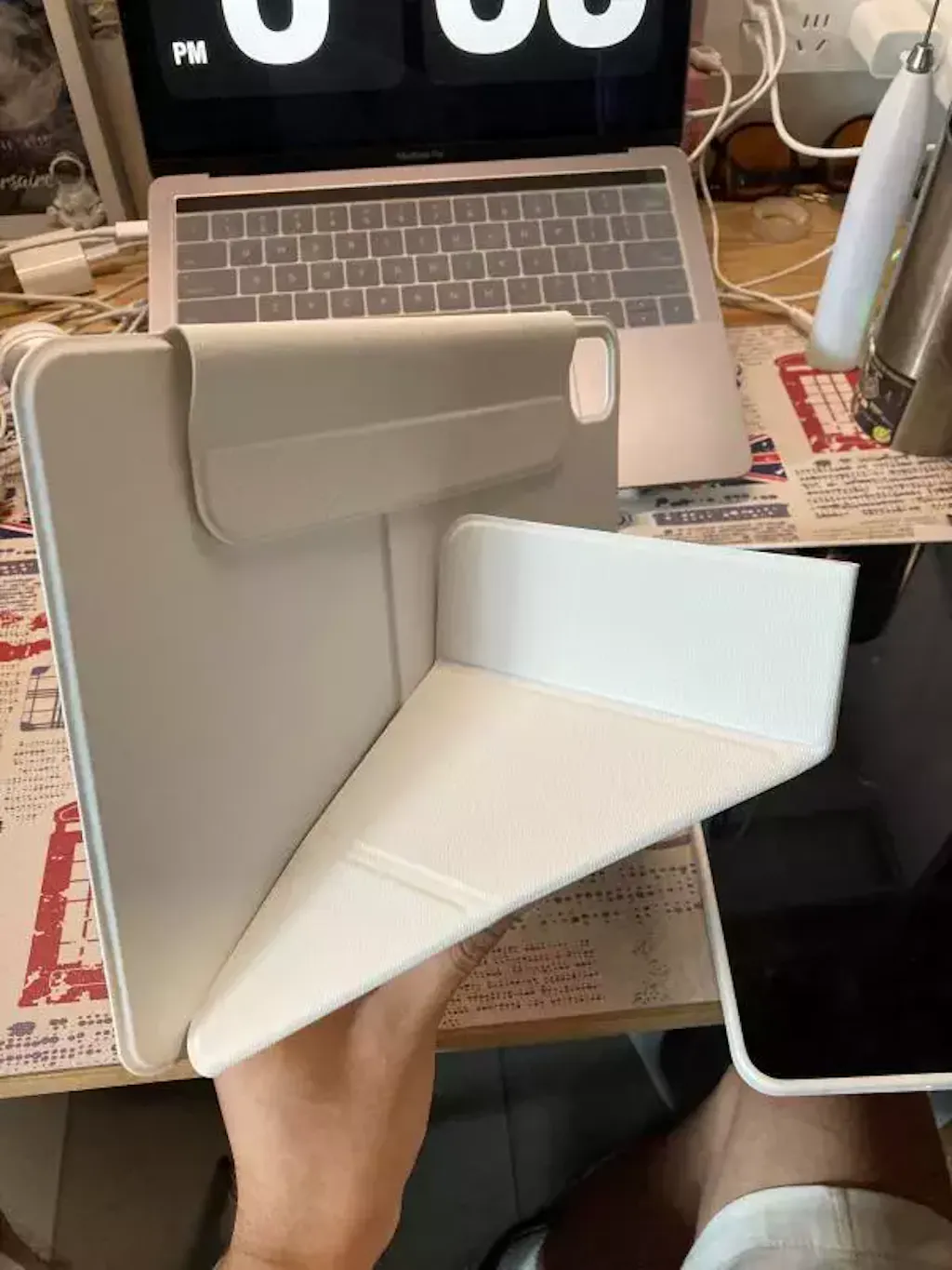The flap of the Folio Case is lined with magnets inside and wraps around the iPad, which keep it closed.
